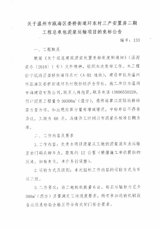 ¹ØÓÚÎÂÖÝÊÐ걺£ÇøÂ¦ÇŽֵÀ«\¶«´åÈý²ú°²¶Ù·¿¶þÆÚ¹¤³Ì×ܳаüÏîÄ¿ÄཬÔËÊäµÄ¾º±êͨ¸æ