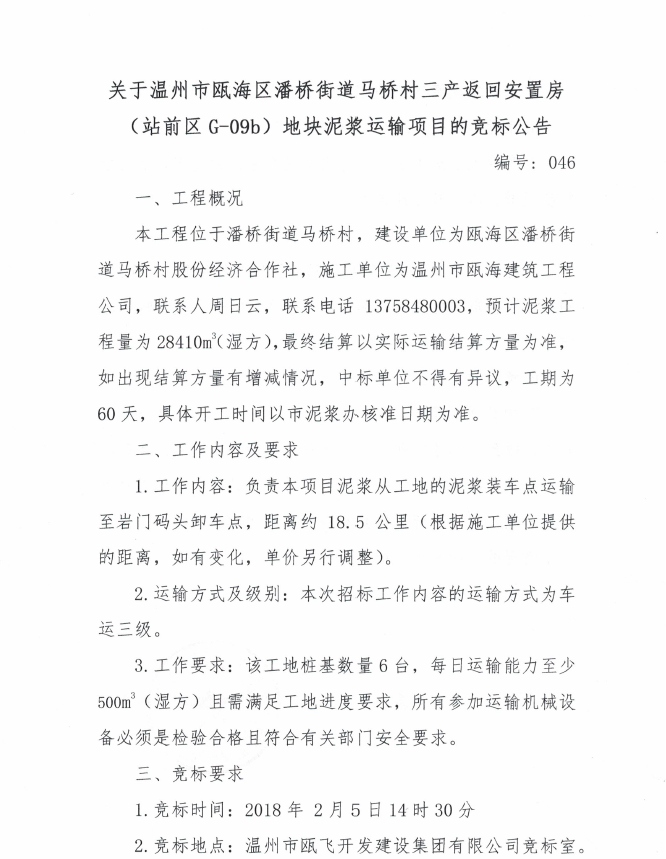 ¹ØÓÚÎÂÖÝÊÐ걺£ÇøÅËÇŽֵÀÂíÇÅ´åÈý²ú·µ»Ø°²¶Ù·¿£¨Õ¾Ç°ÇøG-09b£©µØ¿éÄཬÔËÊäÏîÄ¿µÄ¾º±êͨ¸æ