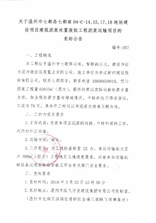 ¹ØÓÚÎÂÖÝÊÐÆß¶¼µºÆß¶¼ÄÏ04-C-14,15,17,18µØ¿é½¨ÉèÏîÄ¿ÐÞ½¨Äཬ´¦Öóͷ£±¨Åú¹¤³ÌÄཬÔËÊäÏîÄ¿µÄ¾º±êͨ¸æ