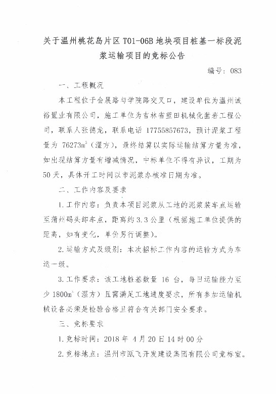 ¹ØÓÚÎÂÖÝÌÒ»¨µºÆ¬ÇøT01-06BµØ¿éÏîĿ׮»ùÒ»±ê¶ÎÄཬÔËÊäÏîÄ¿µÄ¾º±êͨ¸æ