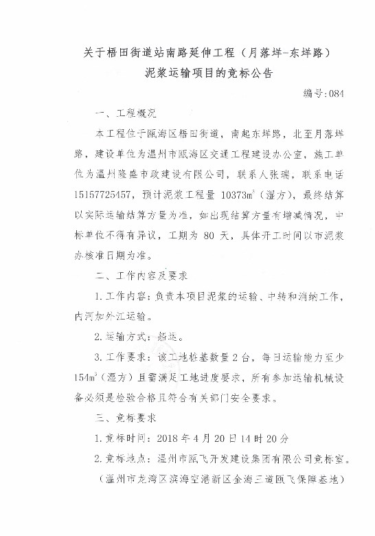 ¹ØÓÚÎÂÖÝÌÒ»¨µºÆ¬ÇøT01-06BµØ¿éÏîĿ׮»ùÒ»±ê¶ÎÄཬÔËÊäÏîÄ¿µÄ¾º±êͨ¸æ